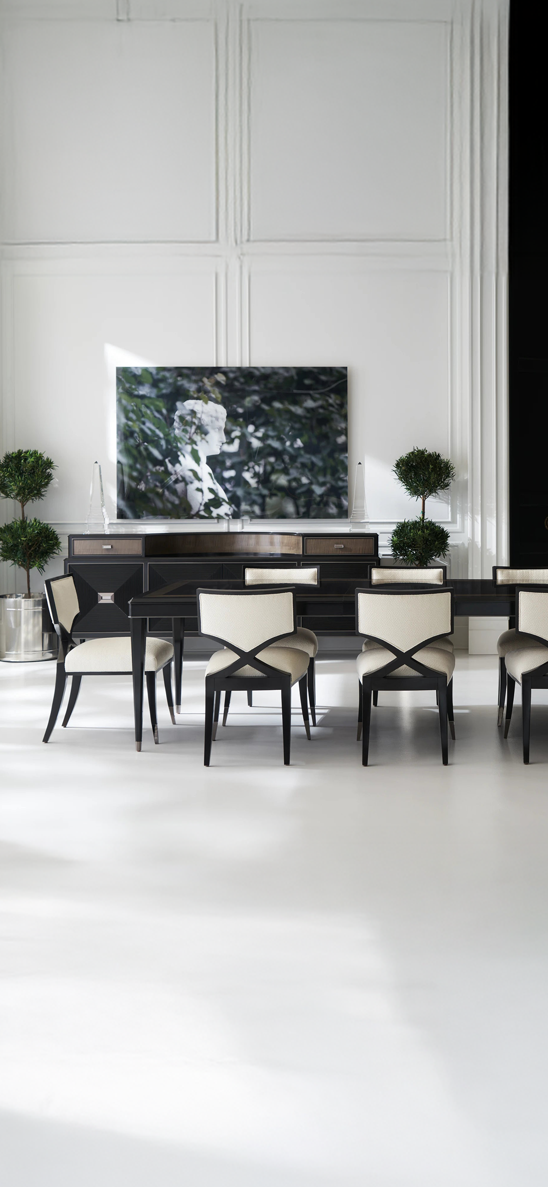 Round, rectangle, oval, wood, stone, glass, lazy Susans, we have it all. Make your gatherings special with a designer dining set. Customize fabric and finishes to make it your own or choose from our in-stock dining sets.